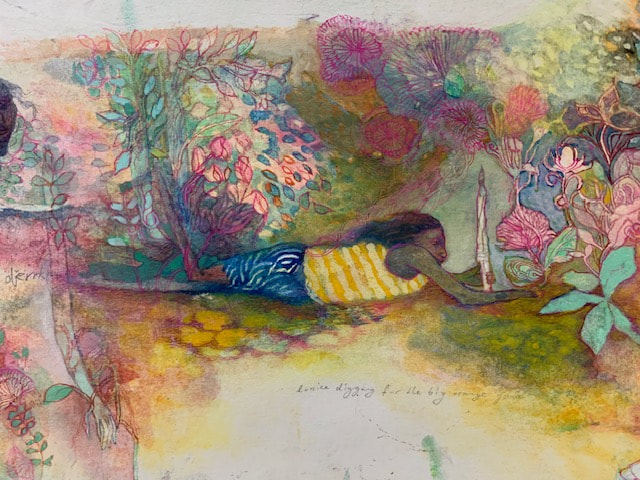 I lived in Yirrkala for four and a half years. The scroll I made during that time holds precious memories - images about encounters with Yolgnu culture, portraits of friends I made, relationships that developed with people of the Laynhapuy homelands, animals, and environments, and reflections on what I was able to learn about the extreme beauty and complexity of Yolgnu culture and its people.